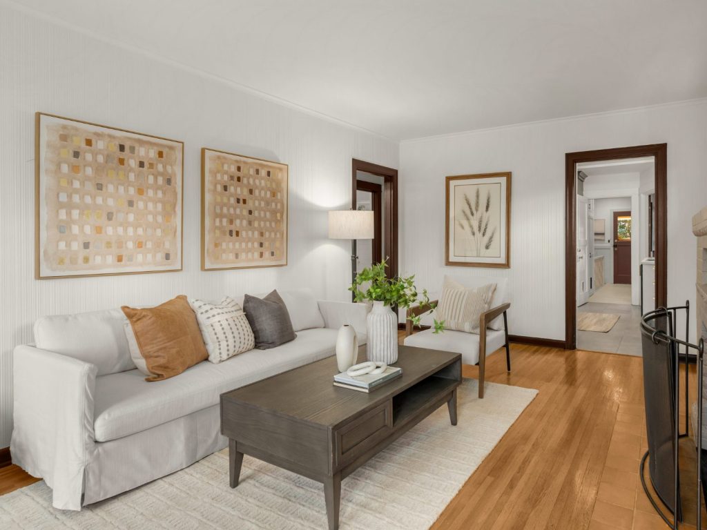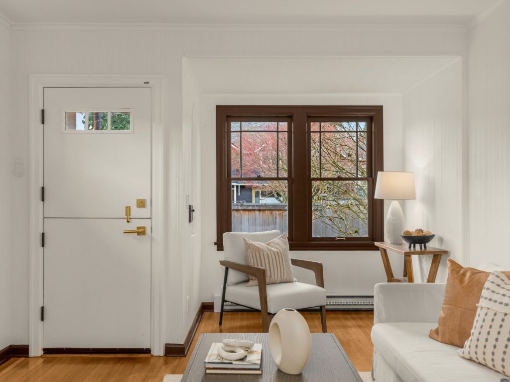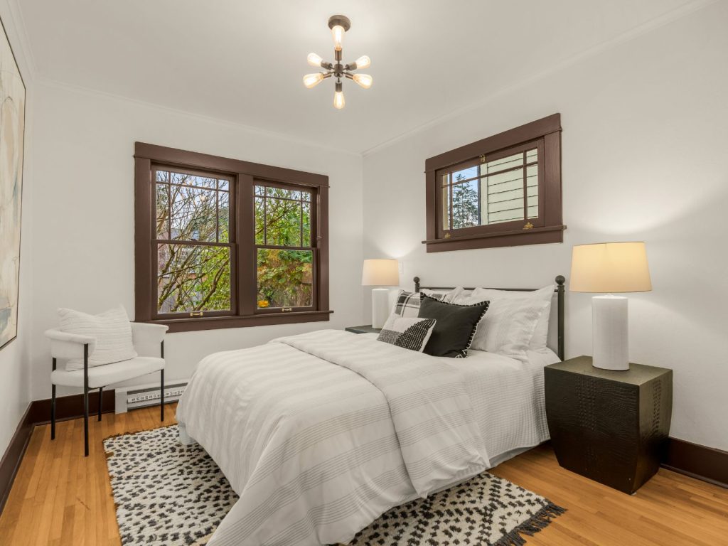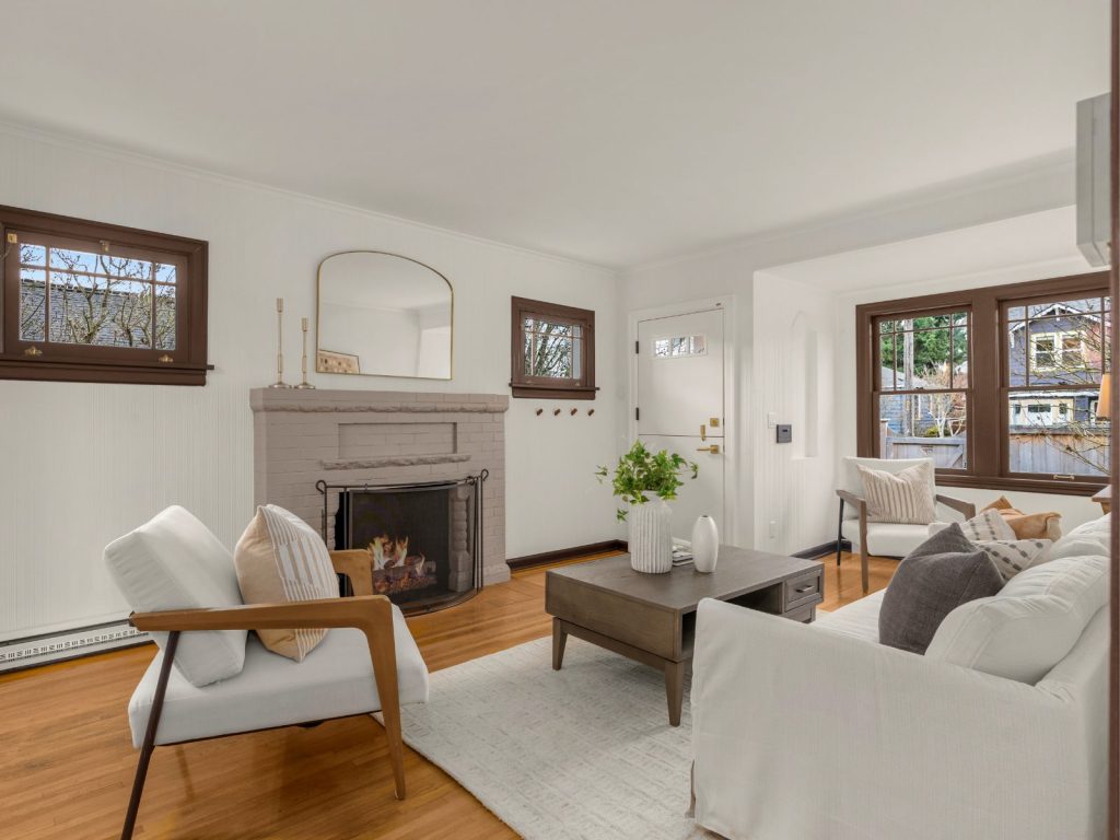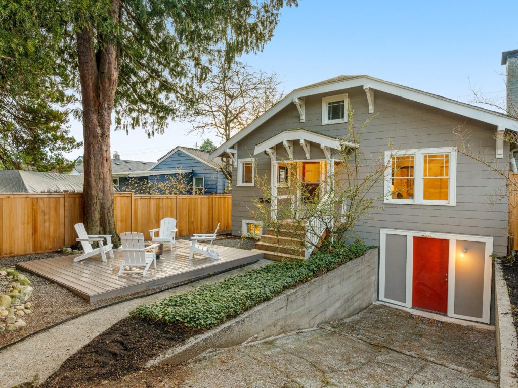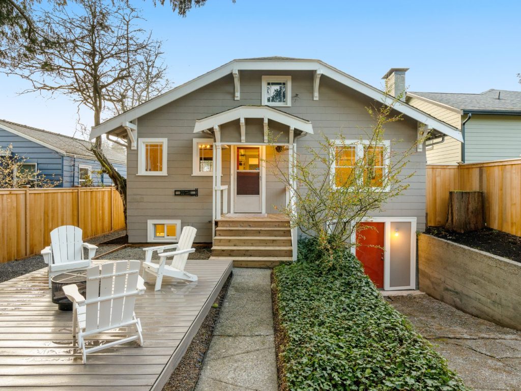 This exceptional 1924 Craftsman welcomes you with a custom Dutch door and abundant western light. Rich in character, the home features a gracious living room with fireplace and beautifully preserved original details, complemented by a desirable circular floor plan. The recently updated kitchen offers new cabinetry, stainless steel appliances, and updated flooring. The primary bedroom showcases vaulted ceilings and a second fireplace, creating a peaceful retreat. A separate, entertainment-sized dining room with classic built-ins and fir floors provides flexibility and could easily serve as a third bedroom.The partially finished basement includes a family room plus recreation/workout space (with potential to convert back to a garage), a dedicated laundry room, and ample storage. Enjoy a remarkably private front and back yard, complete with an entertaining deck and convenient alley access. Located on coveted 17th Ave NW—designated a “Keep Moving Walking Zone”—this quiet, community-oriented street is close to parks, coffee shops, restaurants, Golden Gardens, downtown Ballard, and great schools. Recent updates include sewer, electrical, plumbing, interior paint. A truly special home not to be missed.